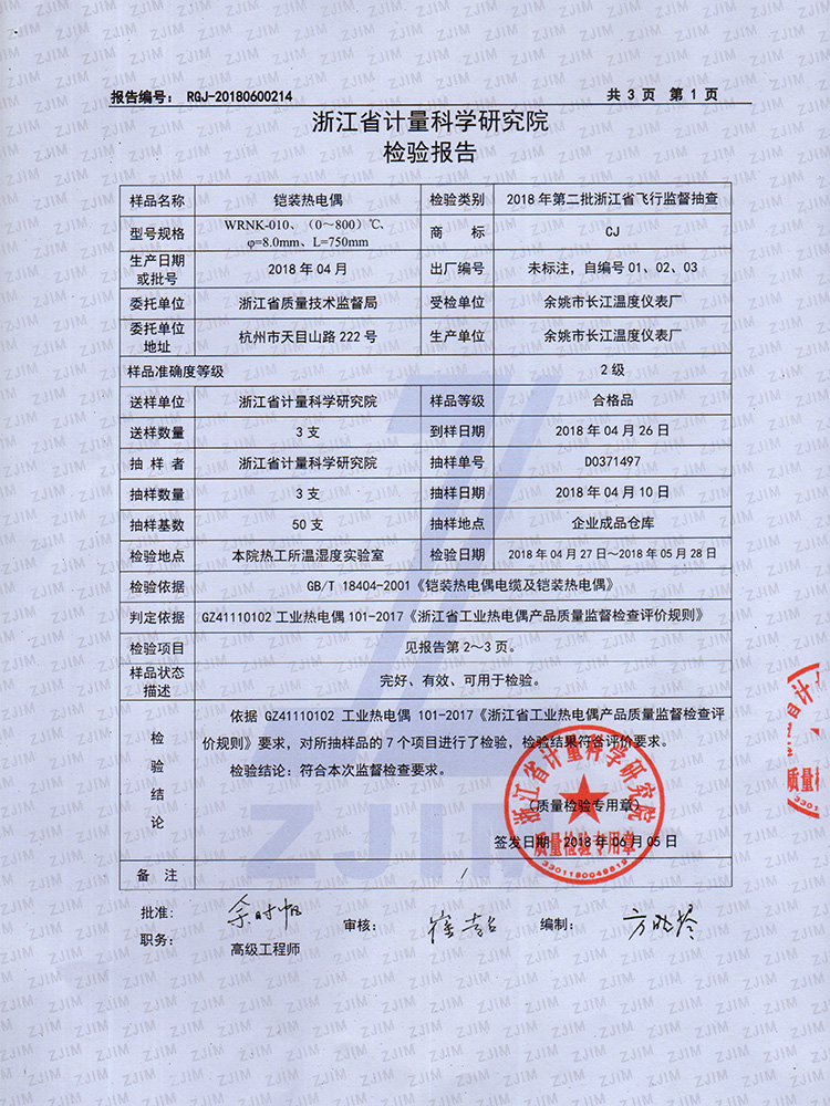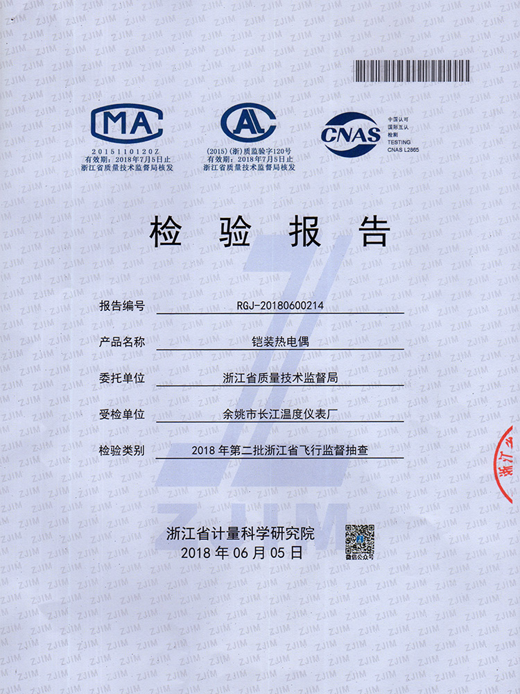 2018年省質檢鎧裝傳感器抽檢報告